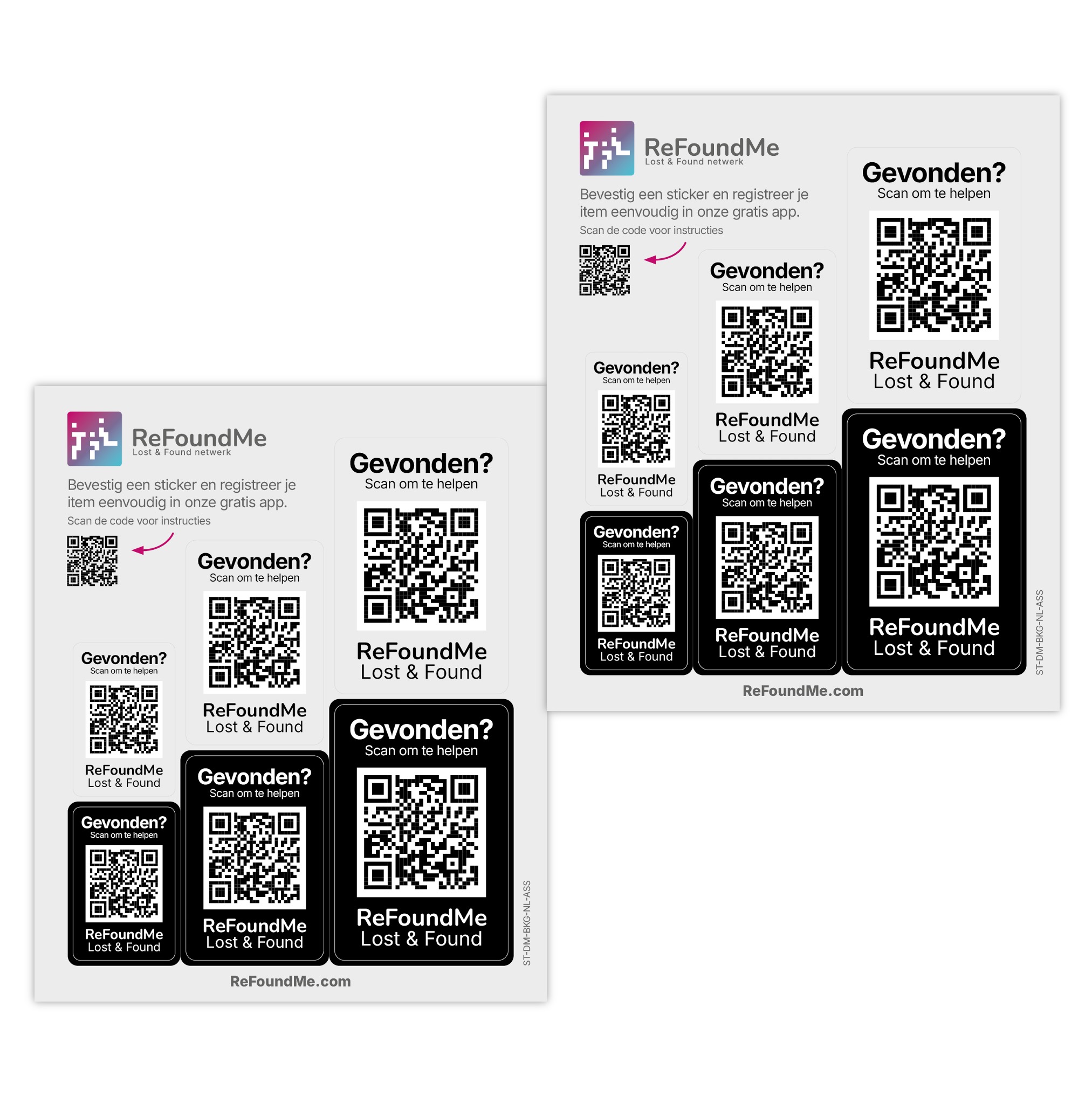 Plak de sticker op je item en koppel hem in de app aan je account. Wordt je item gevonden, dan kan de vinder met een simpele scan direct contact opnemen of het afleveren bij een ReFoundMe Hub zodat je spullen snel en veilig weer bij jou terugkomen.